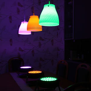 "Valovoimaisempi ja ainoastaan verkkovirralla käytettävä paketti. Muilta osin ominaisuudet ovat likimain samat. Tässä on kyllä myös kolme värisävyä, joissa on mukana UV-valo. UV-valoon reagoivia kasvo- ja tekstiilimaaleja saa esimerkiksi Punanaamion liikkeistä ja verkkokaupasta. Sopii hyvin esimerkiksi tunnelman luomiseen tapahtumapaikalle, biletykseen, kohteiden valaisemiseen tai tanssilattialle."